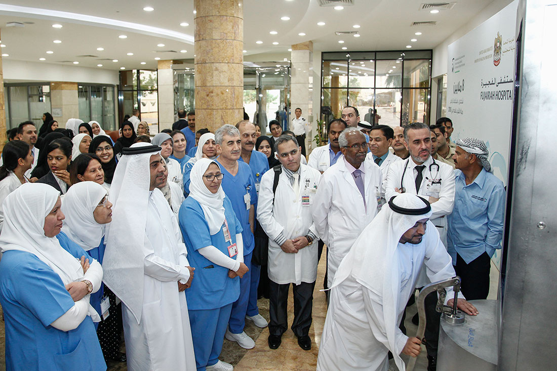 إحدى مبــادرات الشيخ محمد بن راشد آل مكتوم العـــالمية والتي تتيح الفرصة للجميع للتبرع بمئات زجاجات المياه دون الحاجة لشرائها، وتوفيرها للمحتاجين، وذلك عبر الضخ فـــي جهازٍ يدوي.