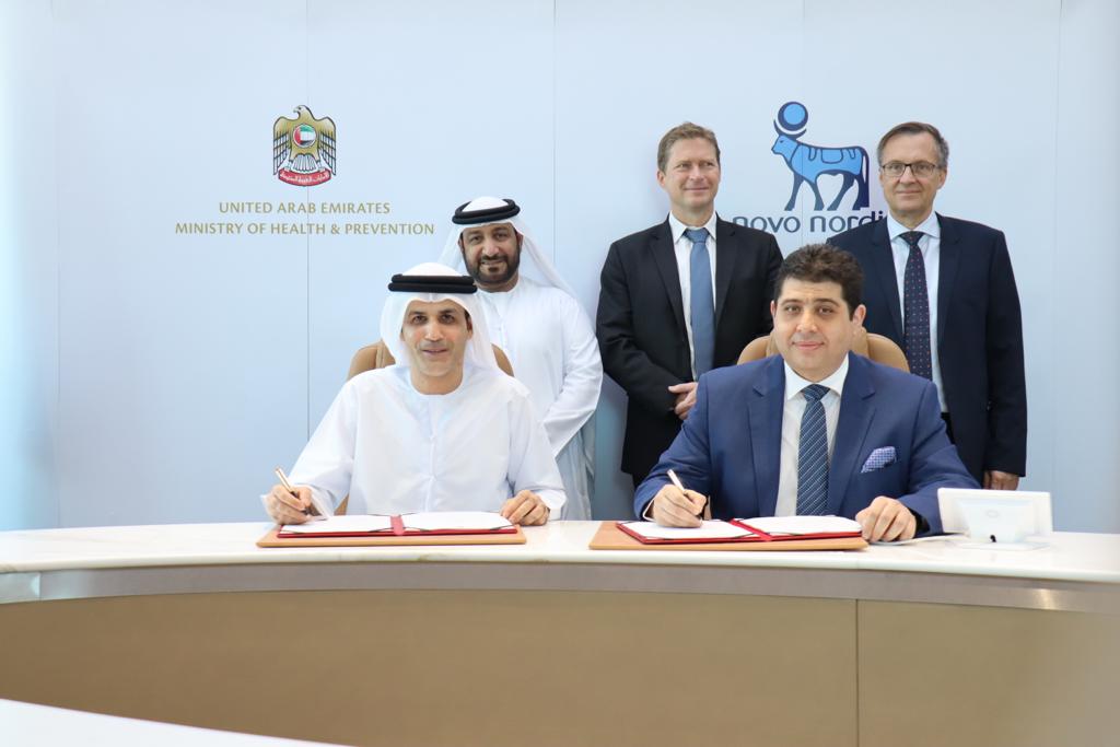 The Ministry of Health and Prevention, MoHAP, has signed a memorandum of understanding, MoU, with Novo Nordisk Pharma Gulf with the aim of enhancing cooperation in the innovation field, obesity treatment and employing the smart apps, research and training, and organizing awareness campaigns.
