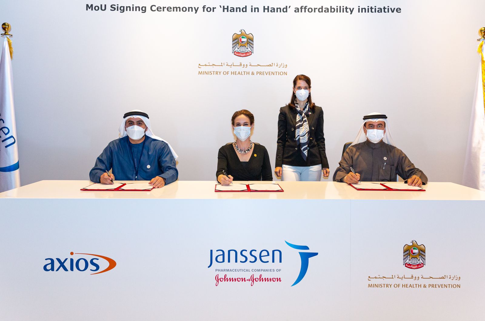 The Ministry of Health and Prevention (MoHAP), Janssen Pharmaceutical Companies of Johnson & Johnson, and Axios, a global healthcare con sulting firm, recently signed an appendix to the Memorandum of Understanding (MoU) to expand the scope of the "Hand in Hand" initiative.