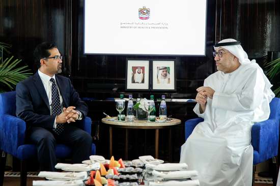 H.E Abdul Rahman bin Mohammed Al Owais, Minister of Health and Prevention (MoHAP), met Dr. Amrit Ray, the Global President, R&D and Medical, Pfizer EMB, to discuss the possibility of establishing a scientific research and Excellence hub in the UAE.