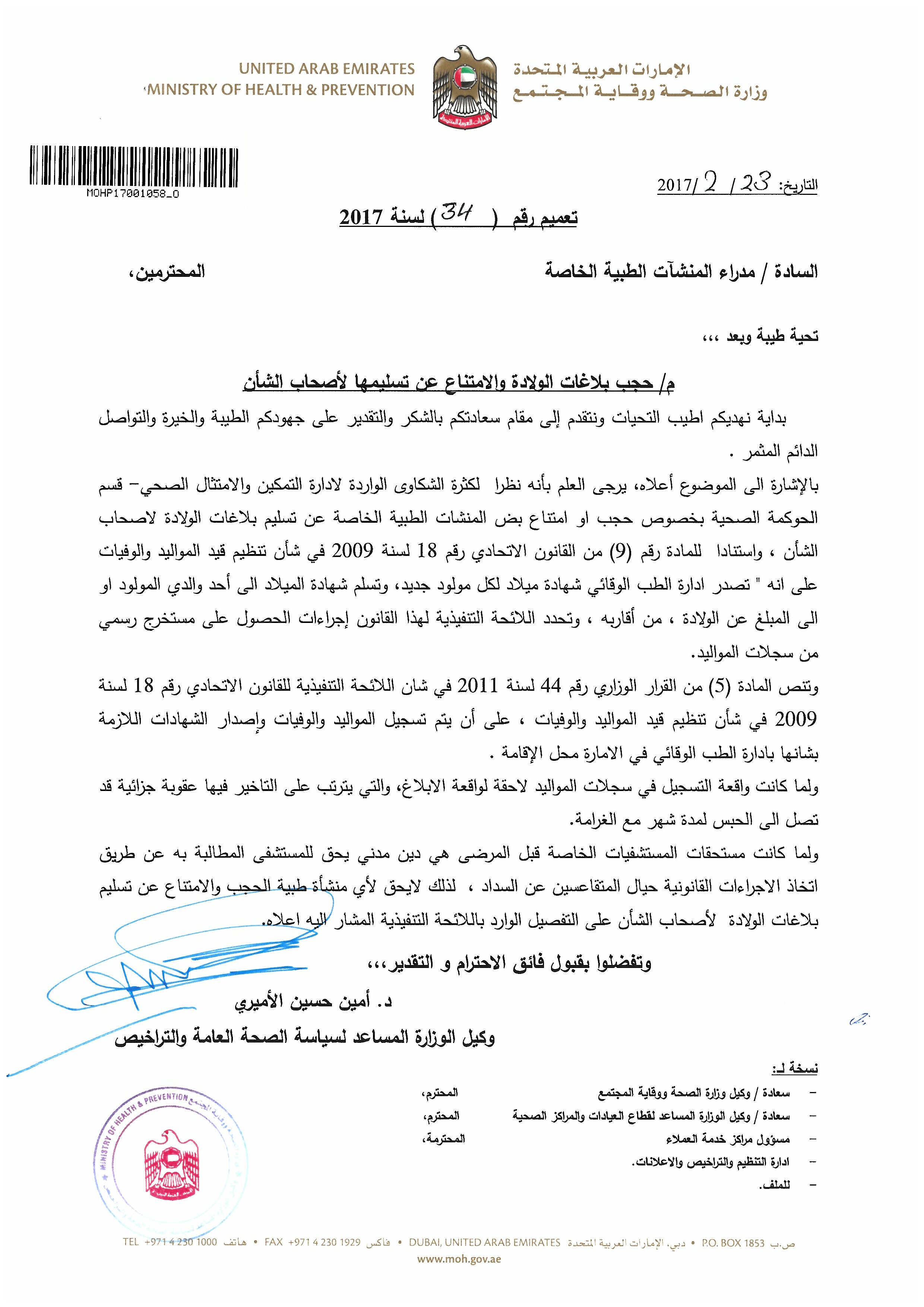 - E-Mail: info@mohap.gov.ae