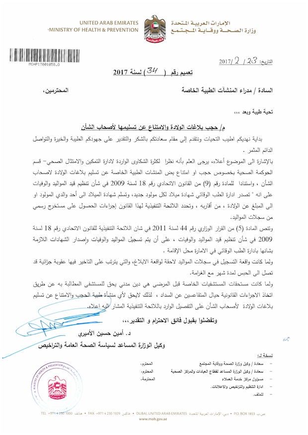 Complaints may be submitted against health and pharmaceutical facilities in the private sector that are licensed by the MOHAP. This includes private health facilities in the northern emirates (Sharjah, Ajman, Umm Al Quwain, Ras Al Khaimah and Fujairah). Complaints against medical facilities located in the Emirate of Dubai or the Emirate of Abu Dhabi should be channeled through the authorities concerned