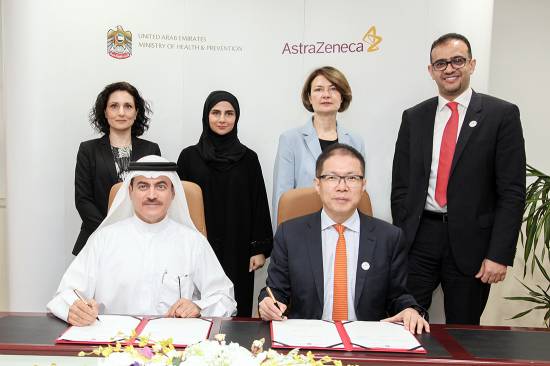 The MoU was signed by HE Dr. Amin Hussein Al Amiri, MoHAP, and Mr. Leon Wang, AstraZeneca, in the presence of Dr. Ruqaya Al Bastaki, Director of MoHAP’s Drug Department, Dr. Rita Al Chalouhi, Pharmaceutical Advisor and AstraZeneca delegation.
