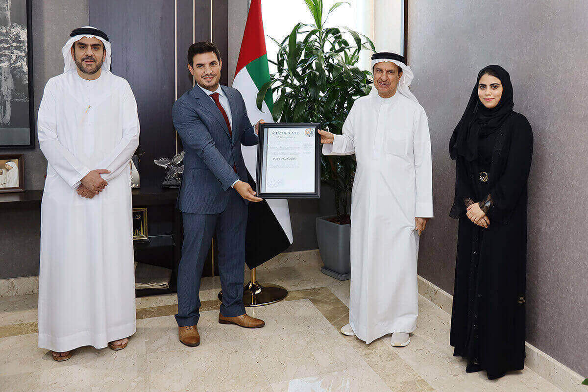 HE Dr. Yousif Mohamed Al Serkal, Director General of the Emirates Health Services Establishment (EHSE), received the ISO certificates at the Ministry’s headquarters from the International Business Solutions’ representative.