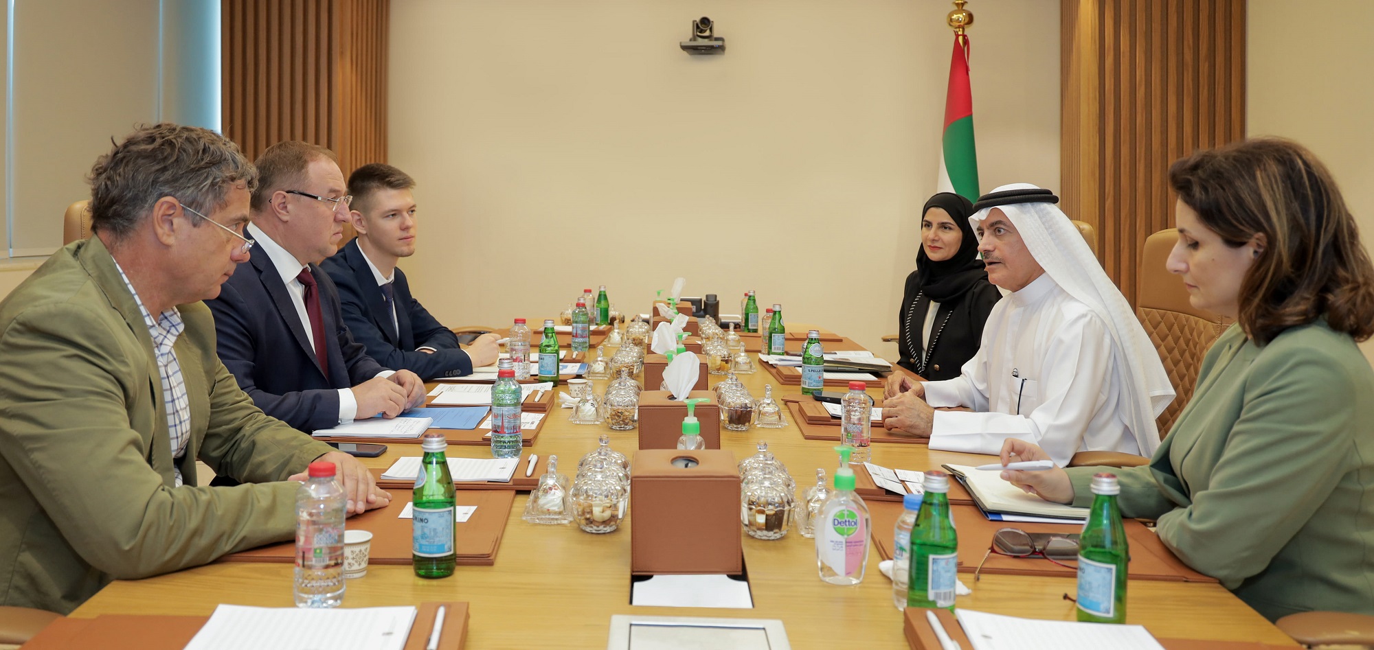 بحثت وزارة الصحة ووقاية المجتمع مع وزارة الصناعة والتجارة الروسية سبل التعاون وتبادل الخبرات وتوسيع الشراكات في القطاع الدوائي بين البلدين، بما يسهم في تعزيز كفاءة المنظومة الدوائية في الدولة، وتشجيع الشركات الروسية لنقل بعض خطوط إنتاجها إلى داخل دولة الإمارات، لما توفره من بيئة جاذبة تساعد على الاستثمار في القطاع الدوائي وفق أفضل الممارسات العالمية.