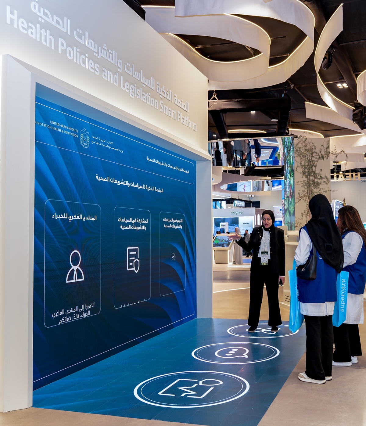 The displayed projects are designed to accelerate the UAE’s strategic shift towards developing health policies and legislative frameworks powered by digital technologies, strengthening decision-making efficiency, and promoting data-driven governance, thereby reinforcing the country’s role as an active contributor to shaping the future of global health.